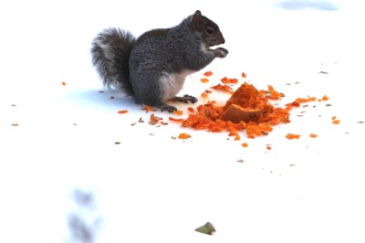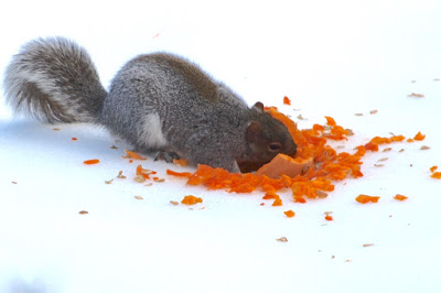 It wasn’t long until the unfolding drama caught my attention. A very plump squirrel was happily marking his territory—those two pumpkin halves. He feasted like it was the finest! Curiosity got the better of me and in my attempts at capturing him on camera, I was taken with his persistence, not to mention his selfishness. Just as keenly as he guarded himself from “human” scent, he also with a vigilance and aggression, guarded his provision. Each time another squirrel would attempt to close in to partake in the feast of goodness, he would lunge as if to say, “back off, this is mine, all mine”. Feasting like royalty, he had no intentions on sharing the bounty.